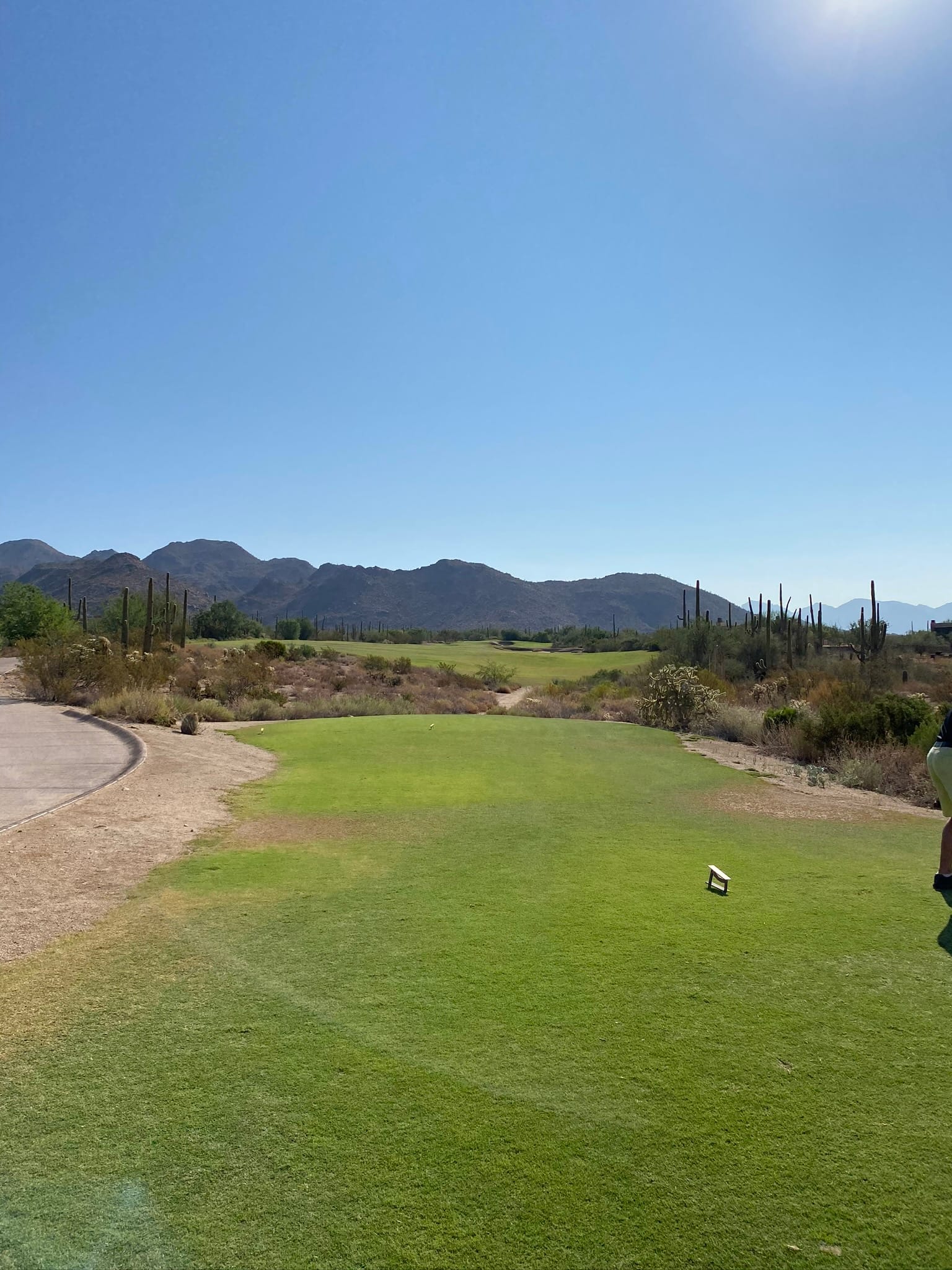 We played the Mountain Course, home to one of the most photographed holes in Arizona: the par‑3 3rd. It’s short on the card but all intimidation in person—a tiny green perched beyond a wide desert ravine, with nothing but air and nerves between you and the putting surface. You either flight a perfect wedge or you’re dropping, scrambling, or trying to manufacture a miracle from well below the green. It’s the kind of hole that sticks with you long after the round, equal parts beauty and punishment.